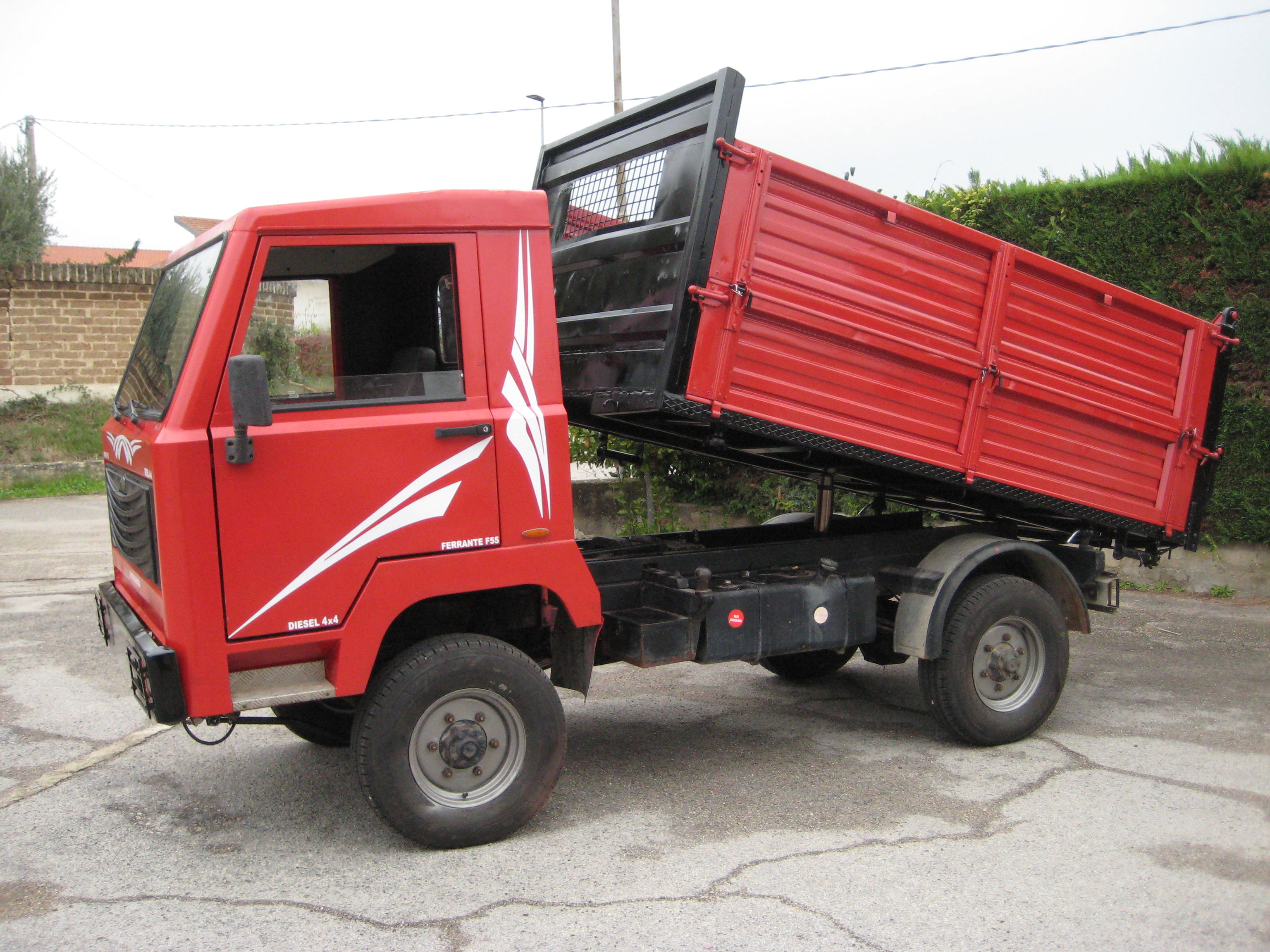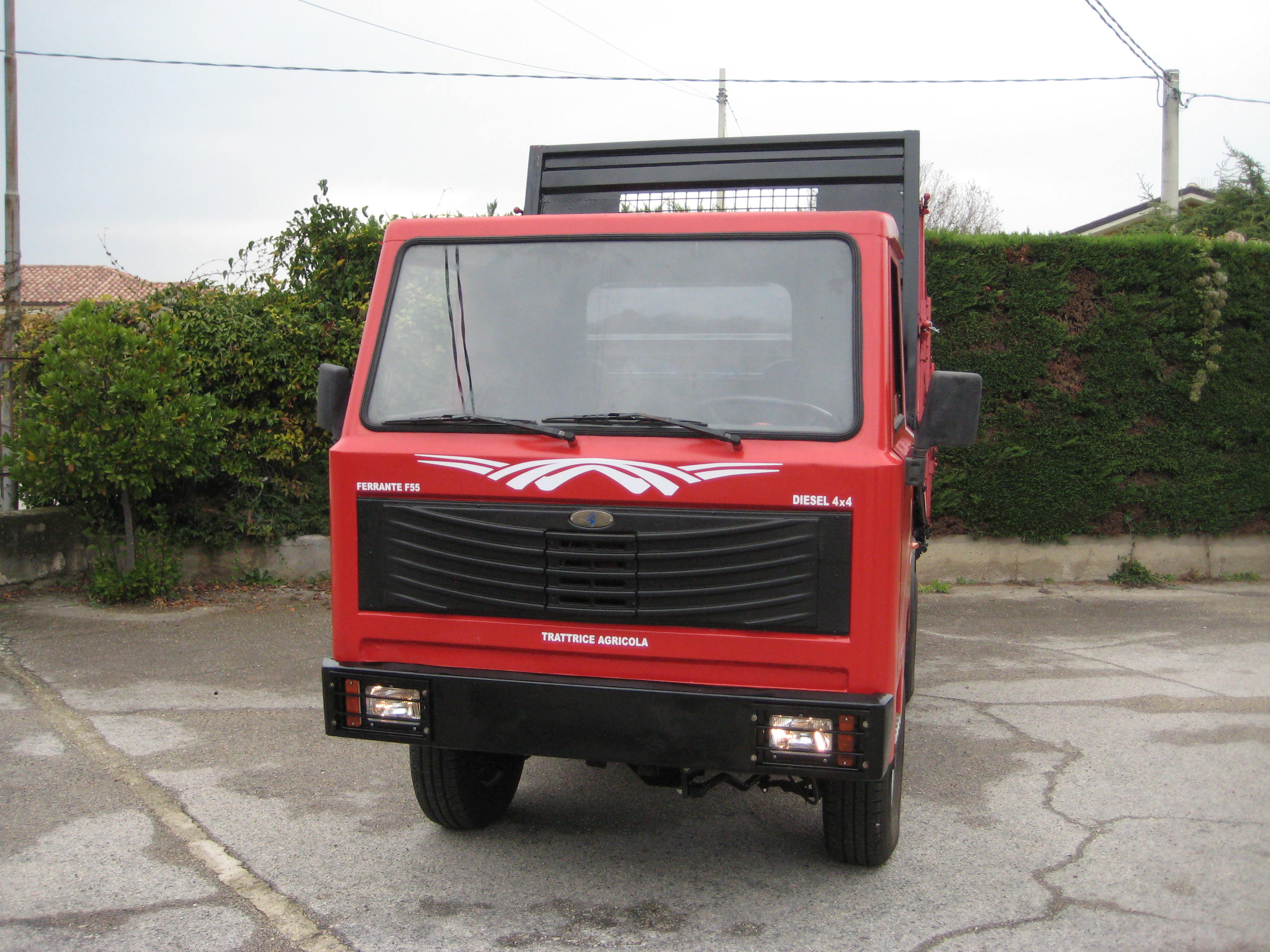 TRATTRICE AGRICOLA FERRANTE F55 4X4 usato, motore VM 26A/10, cv.50, ammortizzatori e balestre paraboliche, cassone ribaltabile trilaterale con sponda da 40+50, ponti diff.li rinforzati Ferrante a 6 colonnette, freni a disco ant. ed a tamburo post. con servofreno, gancio di traino omologato, ruota di scorta ed accessori d'uso